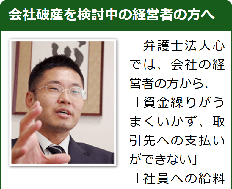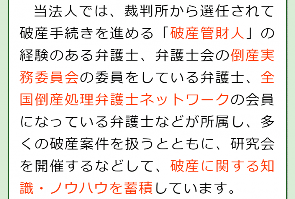当法人では、債務整理手続きを得意としており、会社破産案件の実績ももつ弁護士が、原則としてご依頼を担当させていただく体制を整えております。