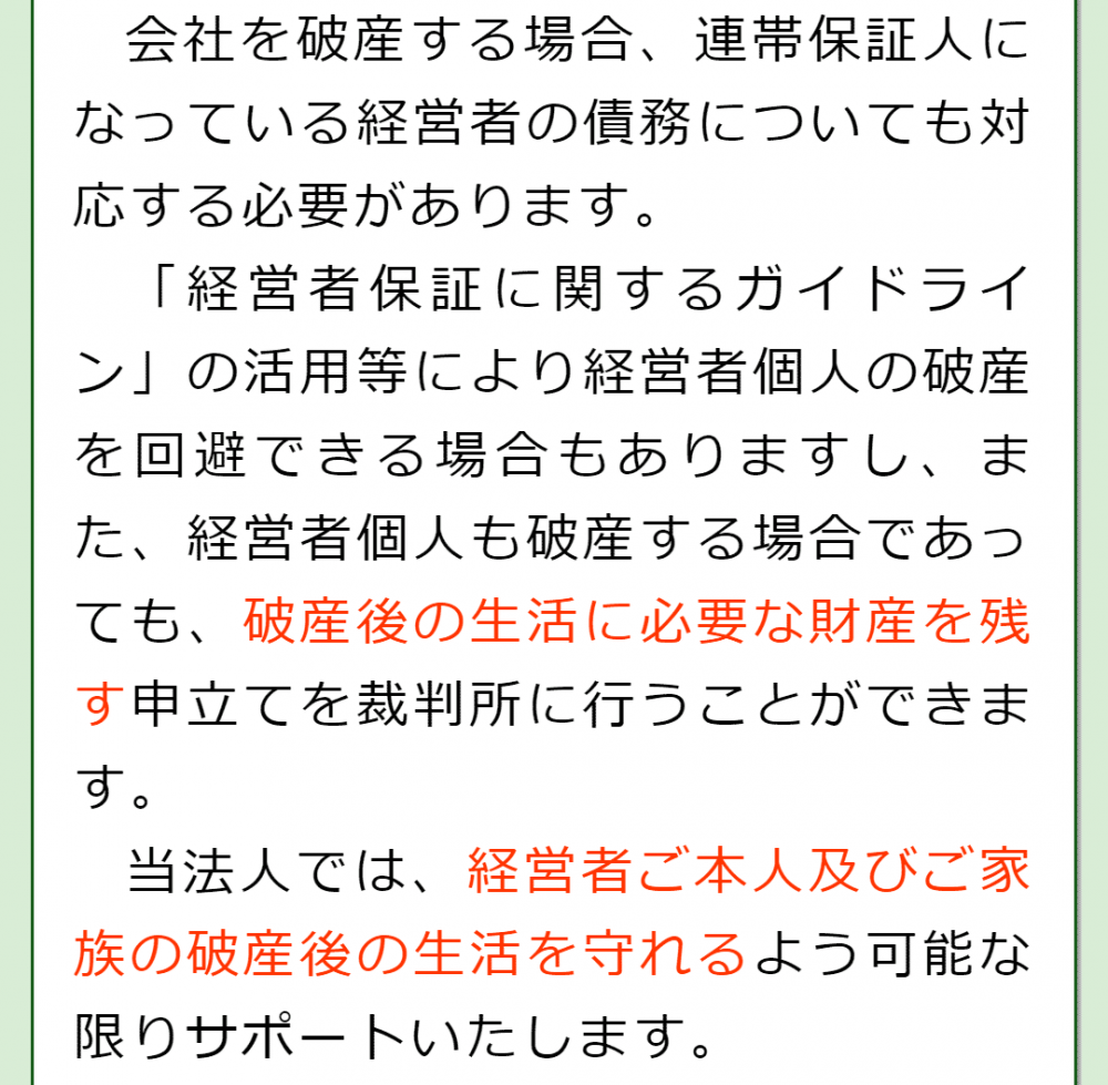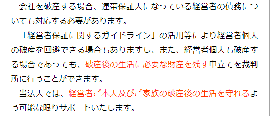 会社が破産しても、代表者が生活の立て直しをできないのでは、意味がありません。