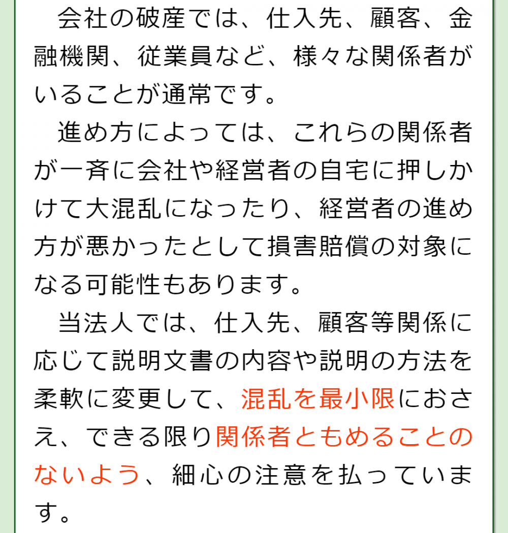 代表者がよかれと思ってやったことが逆効果になったり、破産できない要因になることもありますので、やろうとしていることをそのままやってよいかや、やってはいけないことは何かも確認しておきましょう。
