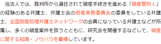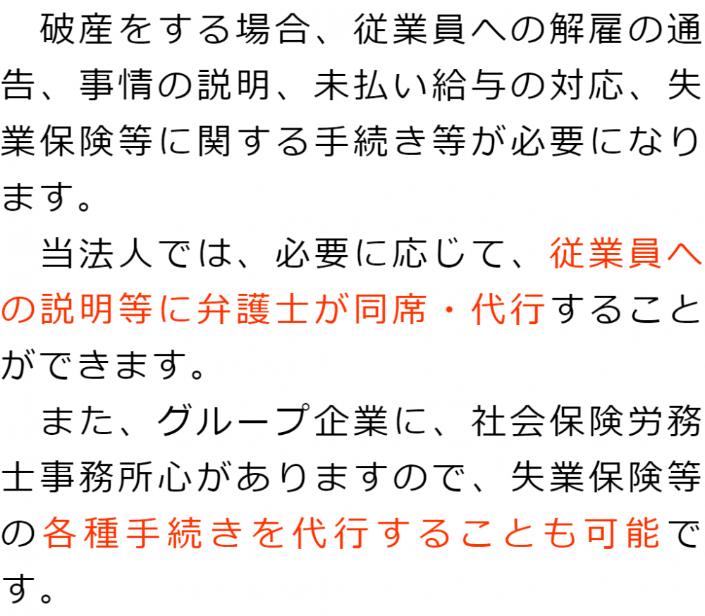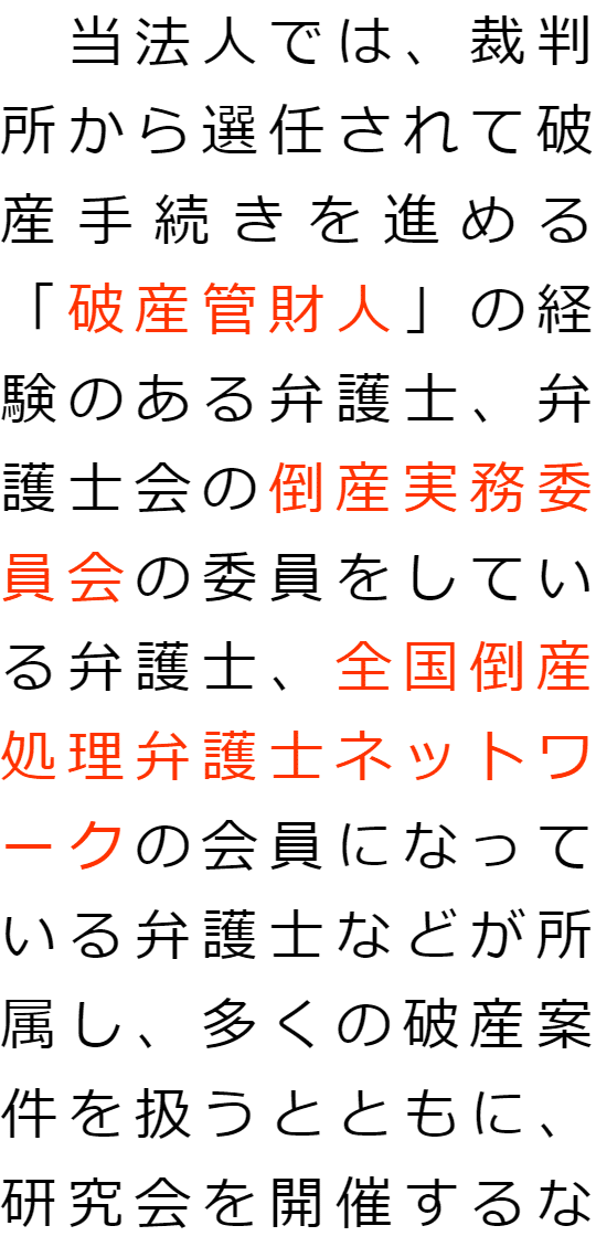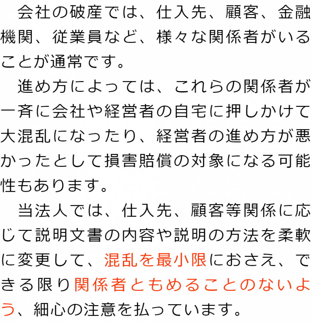 選ばれる理由1 会社破産に詳しい弁護士が対応2 経営者ご本人・ご家族の生活を守る3 従業員にもしっかりと対応4 取引先や金融機関ともめない丁寧な説明5 手続費用を抑えられる 1 会社破産に詳しい弁護士が対応2 経営者ご本人・ご家族の生活を守る3 従業員にもしっかりと対応4 取引先や金融機関ともめない丁寧な説明5 手続費用を抑えられる